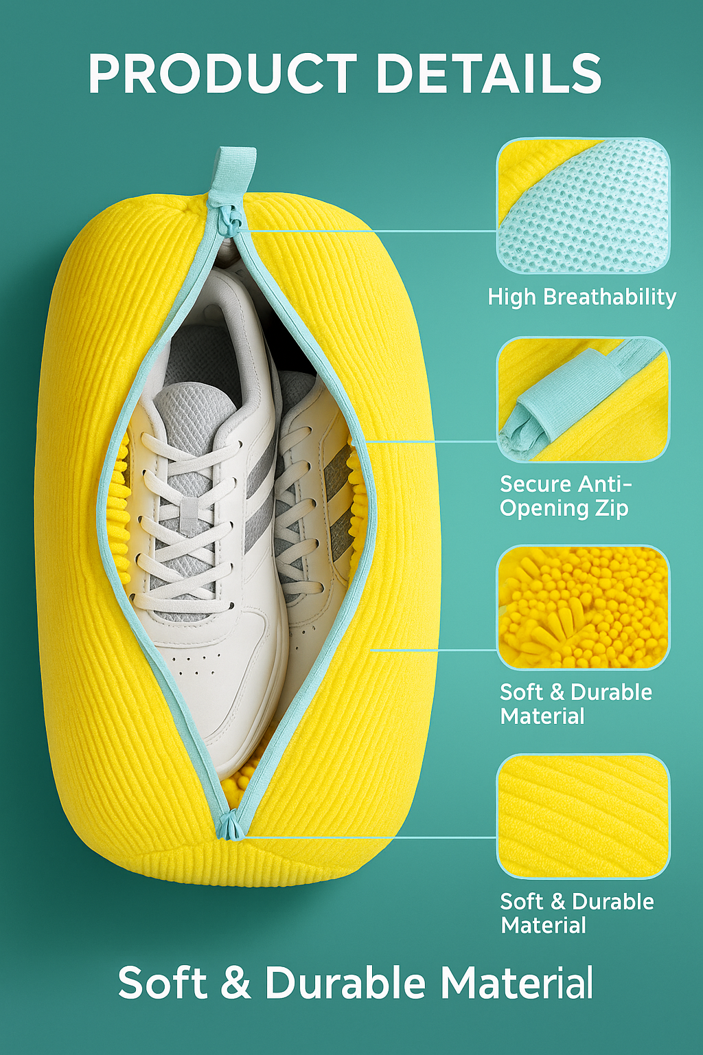 Revolutionize your laundry routine with our innovative shoe care bag, crafted for ultimate protection and cleanliness of sneakers and casual footwear. Enjoy vibrant, perfectly shaped shoes with ease!